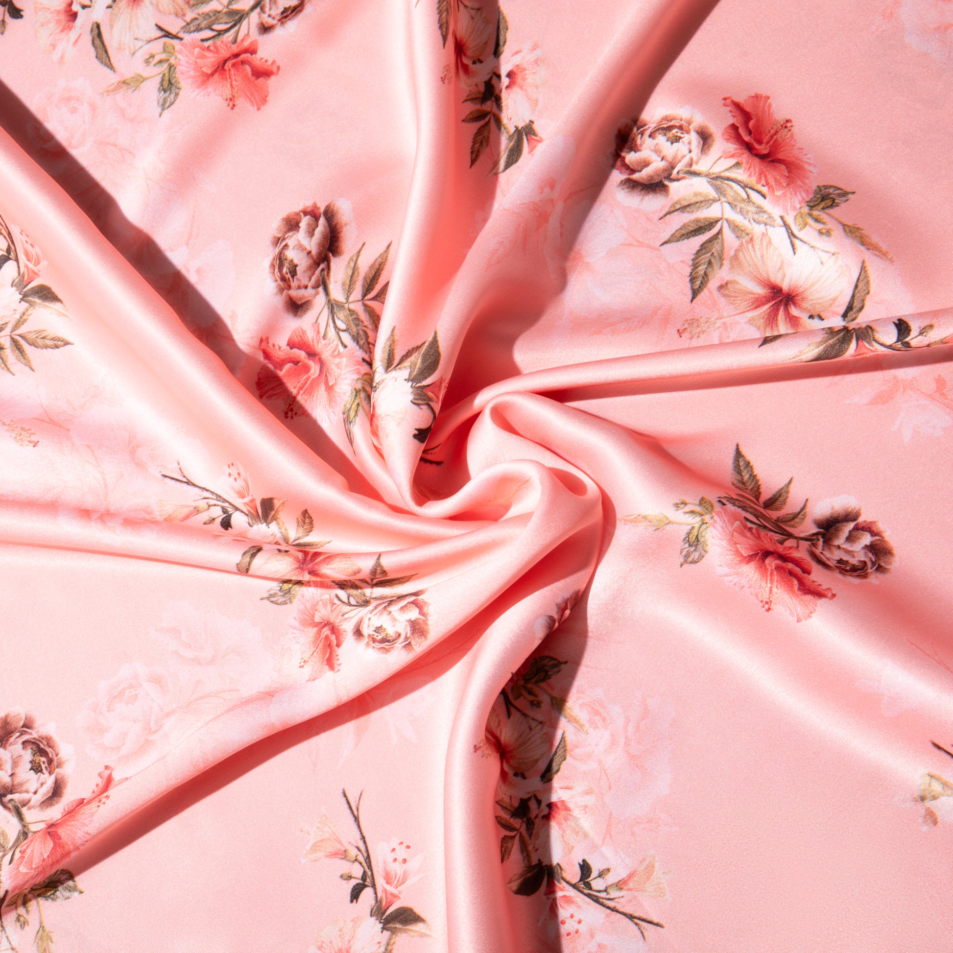 Peach And Brown Floral Pattern Pattern with Olive Green Border READY TO WEAR Satin Saree