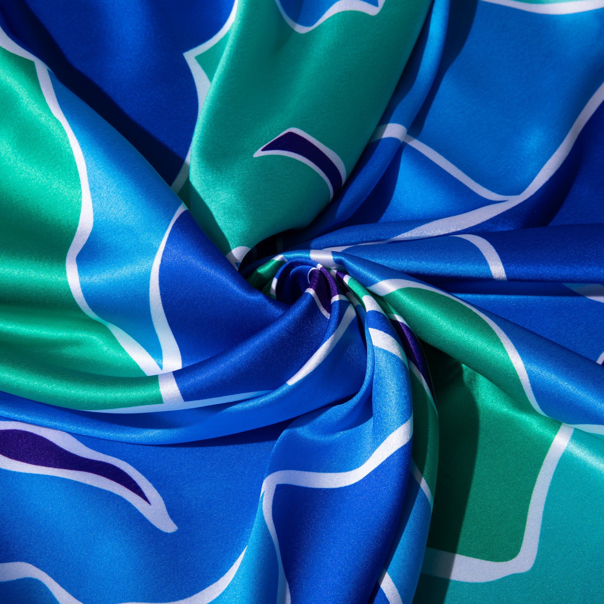 Royal Blue And Green Abstract Pattern with Purple Border READY TO WEAR Satin Saree