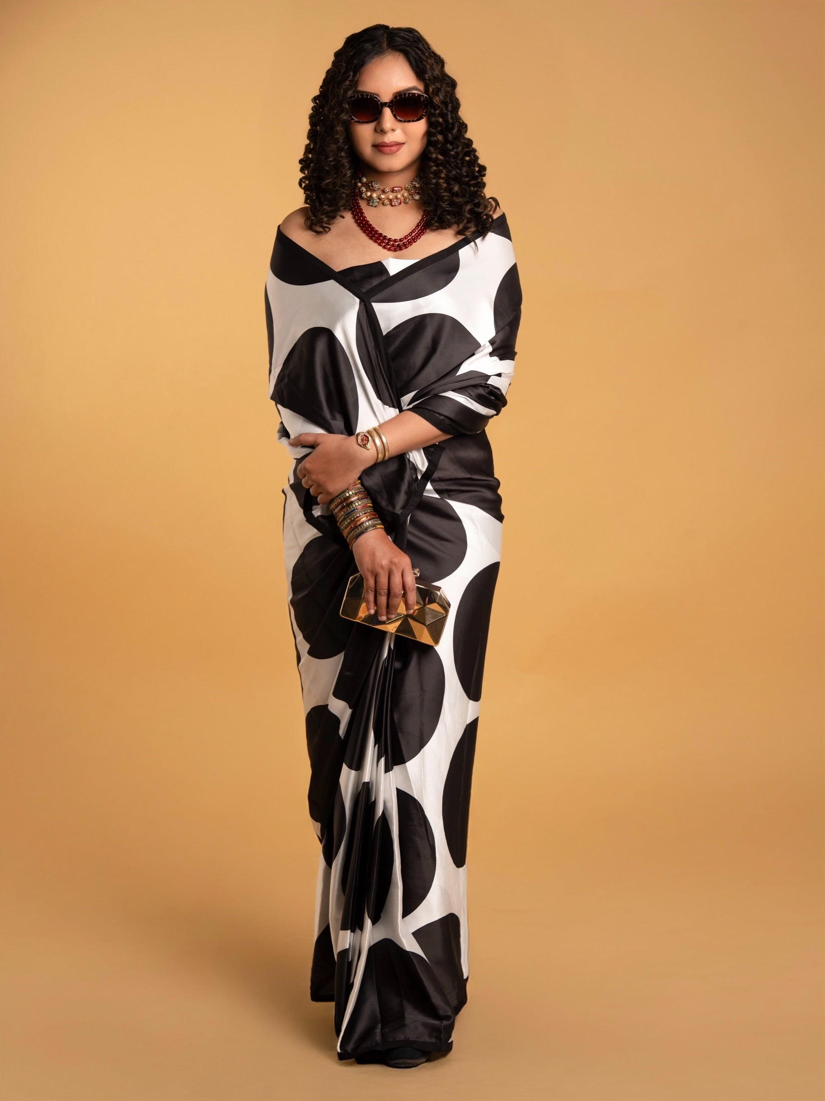 White And Black Polka Dot with Black Border READY TO WEAR Satin Saree
